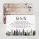 Este cartão de detalhes para um convite de casamento apresenta um design de pinheiro florestal sempre-verde e um verso de painel de madeira rústica. Personalize com as informações do seu evento para criar um convite único que certamente irá impressionar seus convidados.