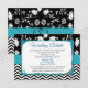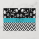 Cartão de Detalhes de Casamento Azul e Preto e Padrão Floral