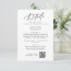 Esta elegante carta de detalhes de casamento preto e branco é perfeita para um casamento simples. A design moderna minimalista apresenta caligrafia romântica eterno preto e branco com estilo de conto de fadas boêmico. Personalize o seu cartão de detalhes do convite de casamento com o endereço do seu site de casamento e o código QR para os convidados poderem facilmente RSVP online.