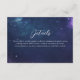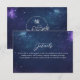 Compartilhe informações importantes com seus convidados com estilo através deste cartão de detalhes do casamento celestial romântico. Com uma sonhadora noite estrelada de um profundo tom azul-marinho e violeta, a frente exibe elegantemente o site do seu casamento, detalhes da recepção, acomodações ou direções. O verso apresenta um charmoso monograma de pombinhos. Perfeito para temas de casamento cósmico, observação de estrelas ou romântico celestial. Personalize facilmente para combinar com o seu evento e coordene com a suite completa de casamento celestial.