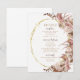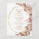 Este cartão de detalhes de casamento com tema boho apresenta aquarelas diáfanas de grama pampas em tons de rosa poeirento e subtis nuances de chocolate. Rosas de creme doce acentuam a moldura oval com brilho dourado, criando uma apresentação elegante para seus convidados. Projetado para combinar com nossa coleção de casamento Boho Pampas Grass. Personalize todos os detalhes importantes do seu casamento adicionando informações sobre a recepção, acomodações e quaisquer outros detalhes.