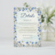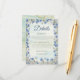 Charmante carta de detalhes do casamento com uma borda de cor d'água de flores silvestres azuis e verde. Perfeito para incluir informações de recepção, alojamento e site de casamento para seus convidados. Totalmente personalizável com seu próprio texto. Coordena com convites de casamento e artigos de papelaria na loja La_Promesse.