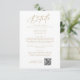 Esta elegante carta de detalhes de casamento branco e ouro é perfeita para um casamento simples. A design moderna minimalista apresenta caligrafia romântica branca e eterno de ouro com estilo de conto de fadas boêmico. Personalize o seu cartão de detalhes do convite de casamento com o endereço do seu site de casamento e o código QR para os convidados poderem facilmente RSVP online.