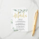 Informações Cartão de Detalhes do Casamento Dourado Eucalyptus