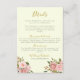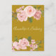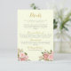 Compartilhe todas as informações importantes com este elegante cartão de detalhes do casamento, com um romântico design floral cor-de-rosa e robusto contra um fundo de ouro rico. Perfeito para incluir detalhes de recepção, acomodações, código de vestimenta ou um link para seu site de casamento. As costas podem ser personalizadas com os nomes do casal ou com um design floral de coordenação.