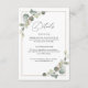 folhagem aquosa eucalipto e estrutura geométrica. Este cartão é para informações de casamento, como acomodação, instruções e outros detalhes que você pode querer que seus hóspedes saibam.