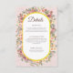 Charming Garden Floral Wedding Details Card com um fundo cor-de-rosa macio com sotaques florais elegantes de borda amarela. Perfeito para compartilhar informações importantes sobre o casamento, como recepção, acomodação e detalhes adicionais com seus convidados. Personalize facilmente para combinar com o tema do seu casamento. Consulte a coleção correspondente em La_Promesse.