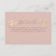 Compartilhe informações importantes com este cartão de detalhes de casamento cor-de-rosa, projetado com sotaques florais de ouro elegantes e tons românticos suaves. Ideal para listar seu site de casamento, acomodações, informações de recepção ou instruções. Uma combinação perfeita para suítes rústicas, boho e casamentos vintage.