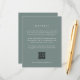 Mantenha seus hóspedes informados com este cartão minimalista de detalhes do casamento em montanha da coleção Highland pela Redwood & Vine Design Co. O rico fundo verde de sábio e a tipografia limpa fazem deste cartão de cercado uma na moda e prática para compartilhar informações essenciais como acomodações de viagem, detalhes do registro ou um link para o seu site de casamento. Uma combinação de excelente para queda ou casamentos no inverno, especialmente aqueles em regiões montanhosas ou ao ar livre.