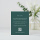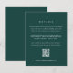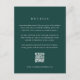 Mantenha seus convidados informados com este elegante cartão de detalhes do casamento da coleção Timber Grove da Redwood & Vine Design Co. Definido em relação a um fundo verde-floresta profundo, a tipografia branca limpa descreve claramente eventos de viagem, hospedagem e fim de semana, enquanto um código de QR digitalizável oferece acesso fácil ao seu site de casamento ou registro. Perfeito para locais rústicos de floresta, refúgios de montanha ou comemorações de inverno, este cartão de cercado garante que todos os hóspedes tenham os detalhes de que precisam em um design sofisticado e inspirado na natureza. Totalmente editável para corresponder ao seu evento exclusivo.