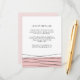 Projetado para coordenar com nossa coleção de casamento Lineation em preto-e-branco, esta placa de inserção de convite contém detalhes-chave para seus convidados, acentuados com linhas geométricas pretas cruzadas e uma camada inferior de bloco de cor em cor-de-rosa-pincel. Que informações incluir em um convite de casamento? Considere detalhes como acomodações de hotel, códigos de grupo, transporte, instruções, informações de recepção de boas-vindas e sua URL do site de casamento. Você pode até fazer upload de um mapa para o lado inverso usando a função Personalizar.