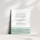 Projetado para coordenar com a nossa coleção de casamento Lineation no Mar, este cartão de inserção de convite contém detalhes chave para os seus convidados, acentuados com negras negras cruzando linhas geométricas e uma camada inferior de bloco de cor em verde-claro-marinho. Que informações incluir em um convite de casamento? Considere detalhes como acomodações de hotel, códigos de grupo, transporte, instruções, informações de recepção de boas-vindas e sua URL do site de casamento. Você pode até fazer upload de um mapa para o lado inverso usando a função Personalizar.