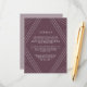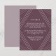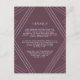 Projetado para coordenar com nossa coleção de casamento Empire estilo Deco em EggPlant, este elegante e moderno cartão de informação de convidado apresenta letras brancas em um dramático cartão roxo de beringela com detalhes geométricos modernos. Substitua o texto da amostra pelos detalhes chave da sua celebração do casamento. Que informações incluir em um convite de casamento? Considere detalhes como acomodações de hotel, códigos de grupo, transporte, instruções, informações de recepção de boas-vindas e sua URL do site de casamento. Você pode até fazer upload de um mapa para o lado inverso usando a função personalizar. Precisa de ajuda com o texto ou a formatação? Eu adoraria ajudar! Entre em contato com Kristen através do link "contate este designer".
