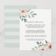 Projetados para combinar com a nossa coleção de convites para o casamento Peach Blossom, os cartões apresentam ilustrações florais de cor d'água em tons sujos de cor rosa-rosa, pêssego e verde-sábio. Que informações incluir em um convite de casamento? Considere detalhes como acomodações de hotel, códigos de grupo, transporte, instruções, informações de recepção de boas-vindas e sua URL do site de casamento. Você pode até fazer upload de um mapa para o lado inverso usando a função Personalizar.