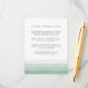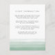 Elegante cartão de informações para convidados em aquarela apresenta faixas de gradiente ombre translúcido em verde de samambaia terroso ao longo da parte inferior para um efeito chique de tingimento. Substitua o texto de exemplo com os detalhes principais da sua celebração de casamento. Projetado para combinar com nossa coleção de convites de casamento Dip Dye na cor verde primavera Fern.