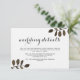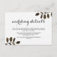 Cartão de detalhes para convidados de casamento com folhas botânicas em estilo rústico chic.