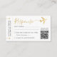 Cartão de resposta MINI RSVP de passagem de embarque de avião dourado e preto com letra elegante, com código QR, um complemento perfeito para um casamento em um destino exótico ou convite de recepção com tema de viagem aérea para o casal que gosta de viajar e está se casando no exterior.