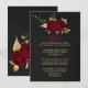 cartão de encerramento romântico burgundy com flores vermelhas escuras e folhas douradas com detalhes pretos.