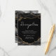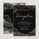 Cartões de recepção de casamento variegados em pedra de ágata falsa com brilho preto e dourado. Confetes de folha de ouro falso e pinceladas de tinta. Fonte script destaca com fonte de nome serif legível. Fácil de ajustar para as necessidades do seu casamento. Feito para combinar com os convites de casamento variegados em pedra de ágata com brilho preto e dourado.