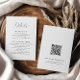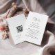 Capture a essência da elegância moderna com nosso cartão de detalhes de casamento minimalista em um layout de retrato. Concebido com sofisticação e simplicidade, este cartão apresenta uma paleta de cores preto e branco atemporal e caligrafia e fontes modernas. Perfeito para transmitir as informações de recepção e acomodação com estilo. A parte traseira inclui um código QR para acesso fácil ao site do casamento e o endereço do site.