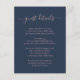 Forneça aos seus convidados detalhes importantes com este cartão de enclausuramento de casamento azul naval e rosa elegante com uma fonte de letra moderna. Itens correspondentes disponíveis. Solicitações personalizadas são bem-vindas.