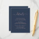 Forneça aos seus convidados detalhes importantes com este elegante cartão de enclausuramento de casamento azul naval e rosa moderno com uma fonte de letra moderna. Itens correspondentes disponíveis. Solicitações personalizadas são bem-vindas.