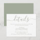 Forneça aos seus convidados detalhes importantes com este elegante cartão de enclausuramento de casamento verde sálvia moderno com uma fonte de letra moderna. Itens correspondentes disponíveis. Solicitações personalizadas são bem-vindas.