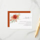 Um conjunto de convite de casamento elegante com flores em aquarela em tons rústicos bege, laranja queimado e sienna sobre um fundo marrom.