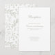 Cartão de enclausuramento de recepção de casamento com design minimalista e sofisticado. Apresenta um design de arte linear floral e folhagem em uma cor verde sálvia elegante. Pronto para você personalizar com os detalhes do seu dia especial. Por favor, explore o Monograma Verde Sálvia e o Conjunto de Casamento Floral com Brasão para produtos correspondentes.