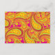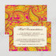 Um design retrô divertido e colorido de paisley na frente e atrás em uma paleta de cores de vermelho rico, laranja, dourado e fúcsia brilhante - torna-se um ótimo cartão de inserção de festa e combina com nosso convite de festa correspondente.