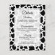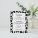 Detalhes do cartão de enclausuramento do convite de casamento. Padrão de fundo de vaca sem emendas preto e branco.