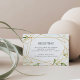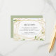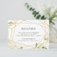 Projetado para combinar com nossa coleção de casamento Terrarium, este cartão de enclausuramento de recepção elegante apresenta uma borda geométrica dourada acentuada com ramalhetes de folhas de aquarela verde e folhagem. Personalize com os detalhes da recepção, horário, local e endereço.