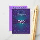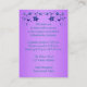 Este belo cartão de recinto de recepção de casamento floral roxo e azul-esverdeado com uma fita roxa IMPRIMIDA e um par de jóias de diamante IMPRIMIDAS e corações unidos de FAUX brilhante está disponível. Você pode usá-lo como um cartão de acomodações ou direções, um cartão de registro de presentes ou poço de desejos, um cartão de site de casamento ou informações, ou como uma etiqueta de presente para anexar aos seus brindes de casamento. Se você redimensionar o cartão, ou se você alterar as fontes, ou o tamanho da fonte, parte do texto pode ser cortado. Tudo será impresso como você vê no seu monitor. Eu não verei seu cartão, e a Zazzle NÃO irá corrigir nada (erros de digitação, desalinhamento, etc.). O texto é personalizável. Se você precisar de ajuda com este cartão, por favor me envie