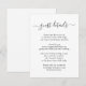 Forneça aos seus convidados detalhes importantes com este cartão de inclusão de casamento preto e branco elegante com uma fonte de letra moderna. Itens correspondentes disponíveis. Solicitações personalizadas são bem-vindas.