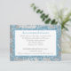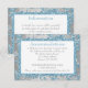 Este elegante cartão de acomodações de casamento com padrão de damasco em lantejoulas FAUX floral em azul gelo e cinza prateado tem um fundo de flocos de neve brancos que combina com o convite de casamento mostrado abaixo. Você pode usá-lo como um cartão de direções, cartão de recepção ou cartão de informações. Seria perfeito para um tema de casamento de um país das maravilhas de inverno, ou um casamento de Natal ou Ano Novo. Se você precisar de outros itens correspondentes, ou gostaria de tê-lo em outra combinação de cores, envie um e-mail para niteowlstudio@gmail.com com sua solicitação.