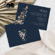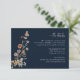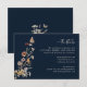 Cartão de marinho Azul De Cama De Flor Selvagem. Elevem a sua papelaria de casamento com este Cartão Azul Boho Wildflower Details, em que a beleza da natureza encontra sofisticação sem esforço. Uma borboleta pintada à mão repousa delicadamente entre flores silvestres de cor aquosa em terracota quente, ferrugem, roxo e azul, contra um rico fundo azul marinho para um contraste impressionante. Os sotaques botânicos e os detalhes inspirados na safra criam uma sensação romântica e orgânica perfeita para qualquer estação. Totalmente personalizável para ajustado de sua celebração exclusiva — edite o texto, experimente com estilos e tamanhos de fonte ou altere o plano de fundo para complementar o tema do casamento. Uma maneira maravilhosamente artística de compartilhar detalhes importantes com seus convidados — comece a criar um design tão único quanto sua história de amor hoje!