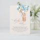Podemos Esperar! :) Este pequeno urso está esperando a grande festa do bebê, sentado num balão de ar quente construído com balões azuis e creme. As aquarelas brancas e a tipografia moderna complementam a design. Personalize este item de Chá de fraldas do urso bonito com os detalhes do chá de fraldas de forma fácil e rápida, pressione o botão personalizá-lo para reorganizar e formate o estilo e a colocação do texto.