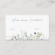 Cartão de enclosure para chuveiro de noiva em verde sage gelado e azul poeirento com flores em aquarela e texto totalmente personalizável para qualquer jogo de adivinhação.