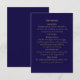 complete o seu conjunto de casamento azul-marinho e dourado com este cartão de envio correspondente. concebido para complementar o seu convite principal, este cartão fornece todos os detalhes essenciais do casamento, incluindo recepção, transporte, alojamento e informações do site. perfeito para uma celebração intemporal e sofisticada.