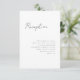 Cartão de envio de recepção de script mínimo 3.5x5. Texto preto em fundo branco. Parte de uma coleção de casamento.
