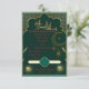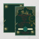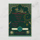 Complete seu conjunto de papelaria de casamento islâmico com este elegante cartão de inclusão muçulmano verde e dourado. Projetado com um luxuoso fundo esmeralda e padrões intricados de arabescos dourados, este cartão de detalhes complementa perfeitamente o seu convite de Nikah ou Walima.