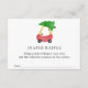 Uma placa de inserção de passagem de rifa de fralda para chá de fraldas. Apresentando um pequeno carro vermelho com uma árvore de Natal Traga um pacote de fraldas (qualquer tamanho) e este ingresso para uma chance de ganhar um prêmio.