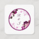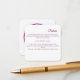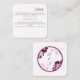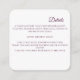 Cartão de cerimônia de detalhes do casamento elegante, com um design de arte digital espantoso, com um círculo roxo ou magenta duplo, escuro, sobre fundo branco pristino. Acentuado pela delicada florescência de roxo branco e escuro nos cantos e sutis esperas de cereja, esta carta adiciona um toque de sofisticação e romance à sua papelaria de casamento. Perfeito para compartilhar detalhes essenciais do casamento com estilo e graça.