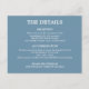 Ambos os lados deste Cartão de Gabinete de Detalhes do Código QR de Casamento Azul Dusty são fáceis de personalizar usando o modelo de personalização online antes de fazer pedidos, para incluir detalhes que seus convidados podem achar úteis. Ao digitar o texto relevante no modelo on-line, altere o URL (endereço do site) do código QR que será atualizado automaticamente no design. Por favor, personalize o texto para mostrar detalhes úteis para seus convidados, como o horário da recepção e notas sobre a recepção, detalhes sobre o alojamento sugerido, uma data de resposta para mostrar no verso do cartão e também seu endereço de web site de casamento para pessoas que talvez prefiram digitar o endereço da web em um computador manualmente para visitar seu site de casamento. Depois de personalizar os detalhes, se você quiser ajustar o layout, você poderá personalizar o design através do botão para "Editar usando a Ferramenta Design", que está disponível rolando para baixo no modelo de personalização.