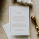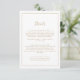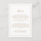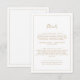 Este cartão de cerimônias de detalhes de ouro minimalista é perfeito para um casamento simples. A design romântica moderna apresenta ouro clássico e tipografia branca emparelhada com uma caligrafia rústica, mas elegante, com estilo voltado para a mão. Personalizável em qualquer cor. Mantenha o design simples e elegante, como está, ou personalize-o adicionando seus próprios gráficos e trabalhos de arte.