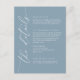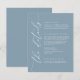 Cartão elegante, elegante, azul e empoeirado, para um belo olhar moderno. Totalmente personalizável com todos os seus detalhes de casamento.