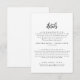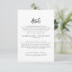 Esta carta de detalhes de casamento é perfeita para um casamento no campo. O simples e moderno design preto e branco apresenta uma alusão à caligrafia manuscrita caprichosa única, com um estilo de boho minimalista contemporâneo. Personalizável em qualquer cor. Mantenha o design mínimo e simplista, como está, ou personalize-o adicionando seus próprios gráficos e trabalhos de arte.