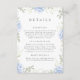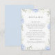 Compartilhe todas as informações importantes que seus convidados precisam com este cartão de detalhes de casamento maravilhosamente projetado. Apresentando delicada design azul-aquarela hydrangea e tipografia elegante, esta inserção fornece detalhes essenciais sobre sua recepção, acomodação e site de casamento. Perfeitamente coordenado com casamentos de jardim, rústicos ou de temas florais, este cartão facilita o guiamento sem esforço dos seus convidados.
