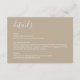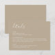 Esta carta de detalhes do casamento do boho beige moderno apresenta uma design minimalista com uma cor bege-suja e bege-boho e uma tipografia moderna e limpa. Está disponível uma suite de casamento coordenada.