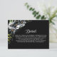Um elegante cartão de cerimônia de detalhes florais preto para incluir com seu convite todos os detalhes adicionais importantes que seus convidados podem exigir para garantir que seu dia especial corra sem problemas.
